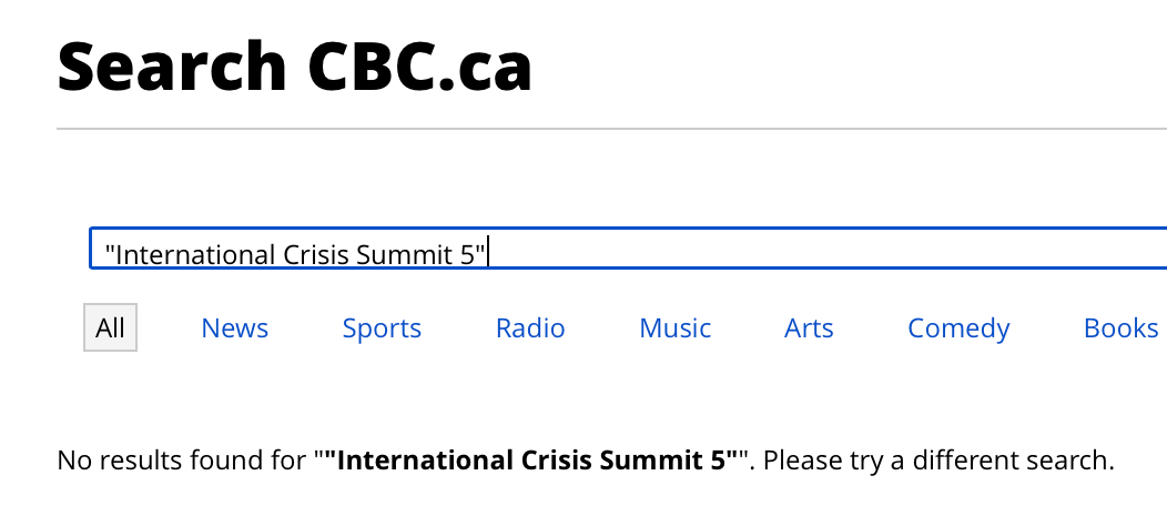 Here and there we are finding coverage of the larger event - the International Crisis Summit. But only on the websites of participants. NOT on mainstream media. On February 26, for example, the CBC chose to cover airline fees, curling, a lost phone, old hockey cards, Joe Biden’s age problem and the “hurdles” the Online Harms bill has had to overcome. NO analysis that the while seeking to block online harms (like access to children by predators) the bill can likely institutionalize the kinds of harms of currently already being perpetuated by media - blocking citizen access to critical life-saving information. With concerns around MIS/DIS/MAL information, what about the concern of taxpayers that the media outlets they have been compelled to support provide NON-information? Imagine we all need to pay taxes to access the local tap water supply. But then we find out that our water is poisoned BUT we need to keep paying for it while we pay for a private water supply? That might be a way to describe what his happening with our taxpayer funded media.