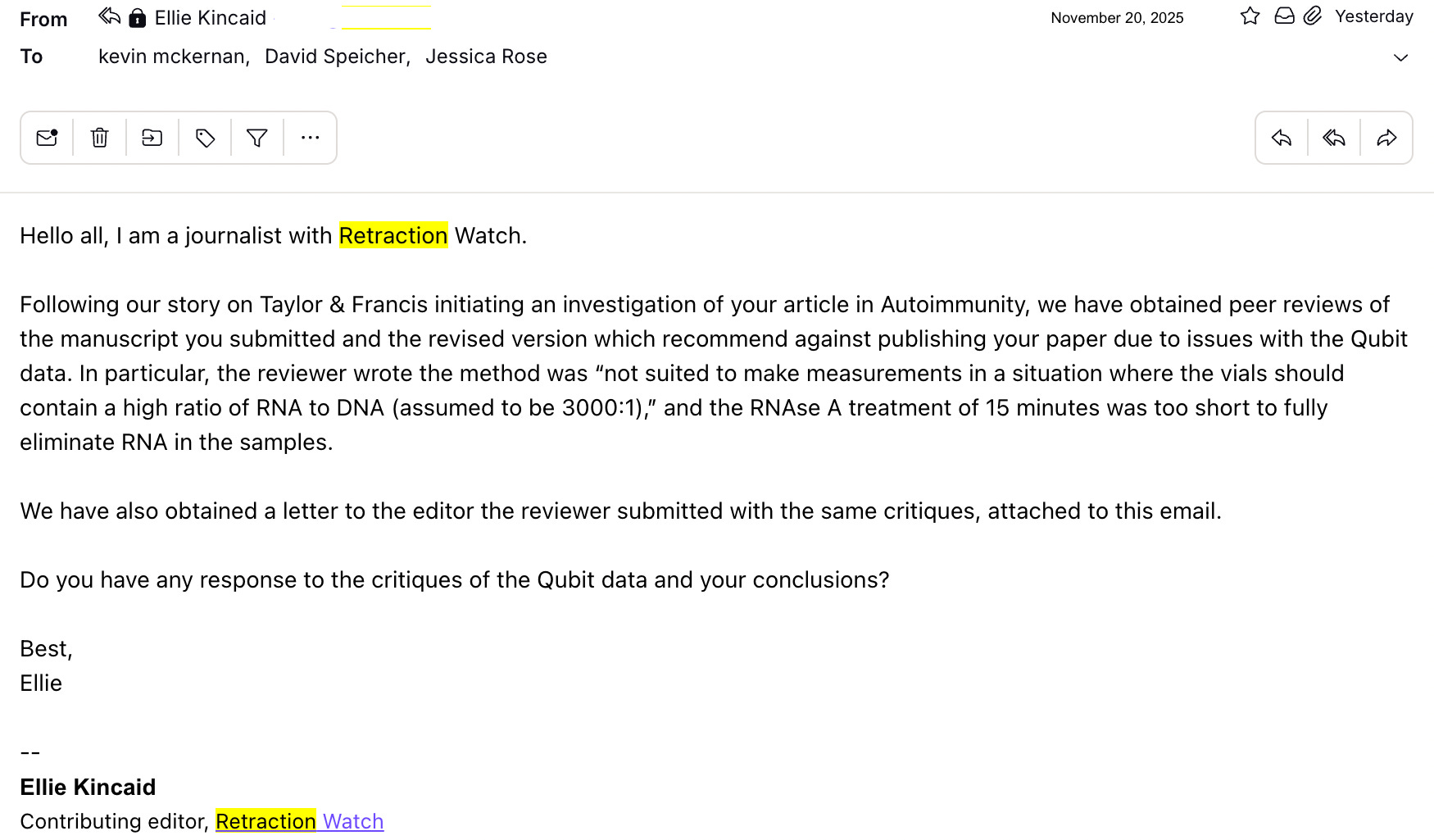 And then the email from a Retraction Watch journalist came: